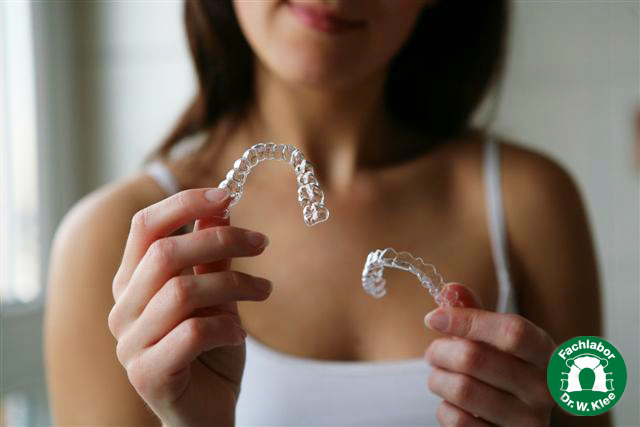 Alle zwei Wochen wird eine neue Schiene eingesetzt, um die Korrektur der Zahnstellung fortzusetzen.